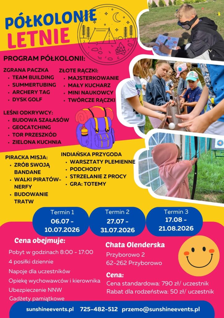Gorąco zapraszamy do udziału w półkoloniach organizowanych w Chacie Olenderskiej w Przyborowie k . Gniezna.